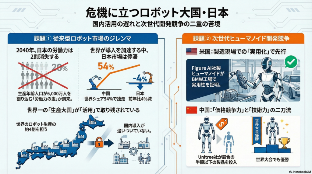 労働力不足という内部要因と、グローバル競争激化という外部圧力。この二つの力学が交差する今、日本のロボット産業は真価を問われている。