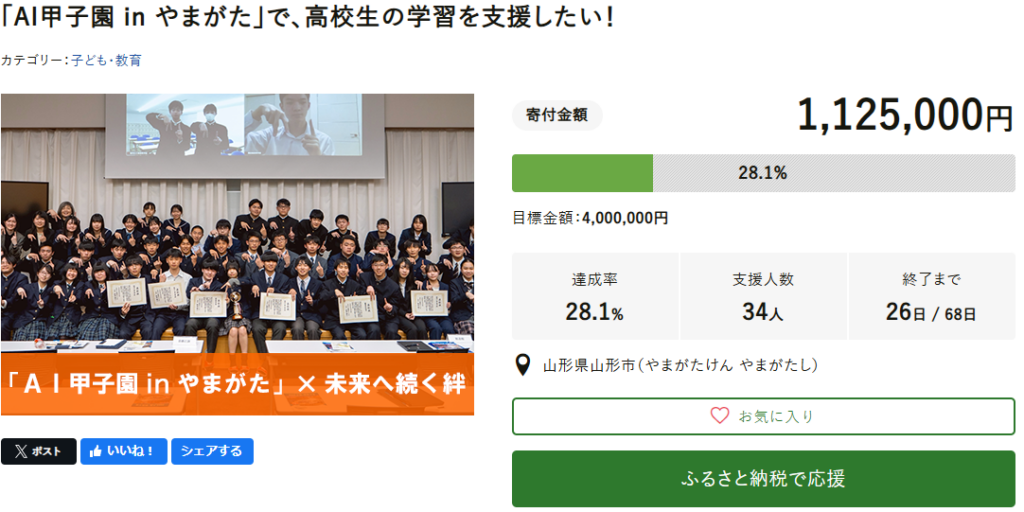 【ご支援のお願い】未来のAI人材を育てる「AI甲子園」―山形市GCFが始まりました